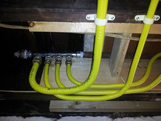 Ccst running gas line through floor. It shows the damage to a csst gas line from a. Csst should not be confused with flexible gas appliance connectors the product that joins a moveable appliance to your home or building s gas supply line. Here is a csst line improperly installed through a foundation wall. I need to run a gas line through the floor to install a gas range.